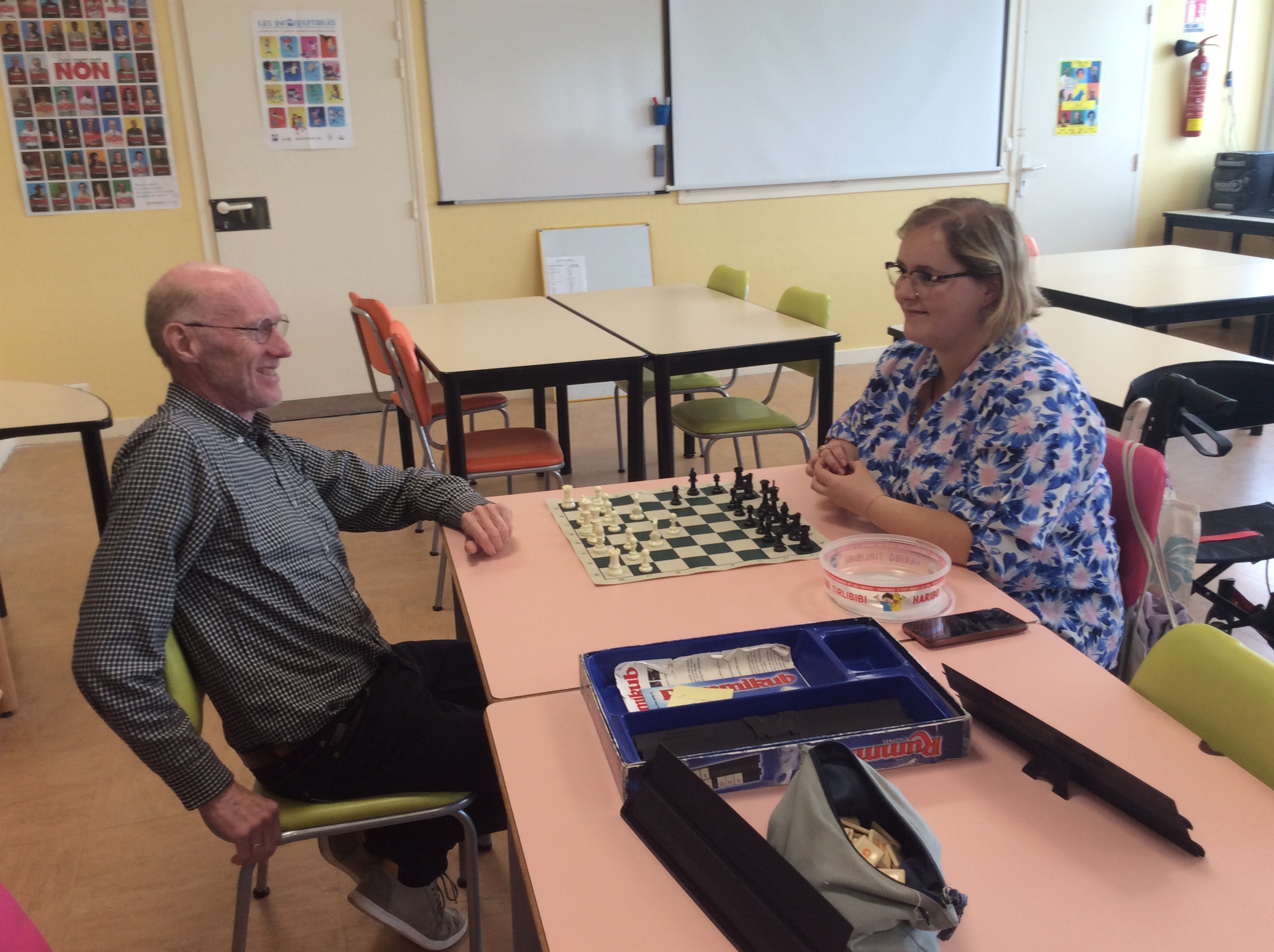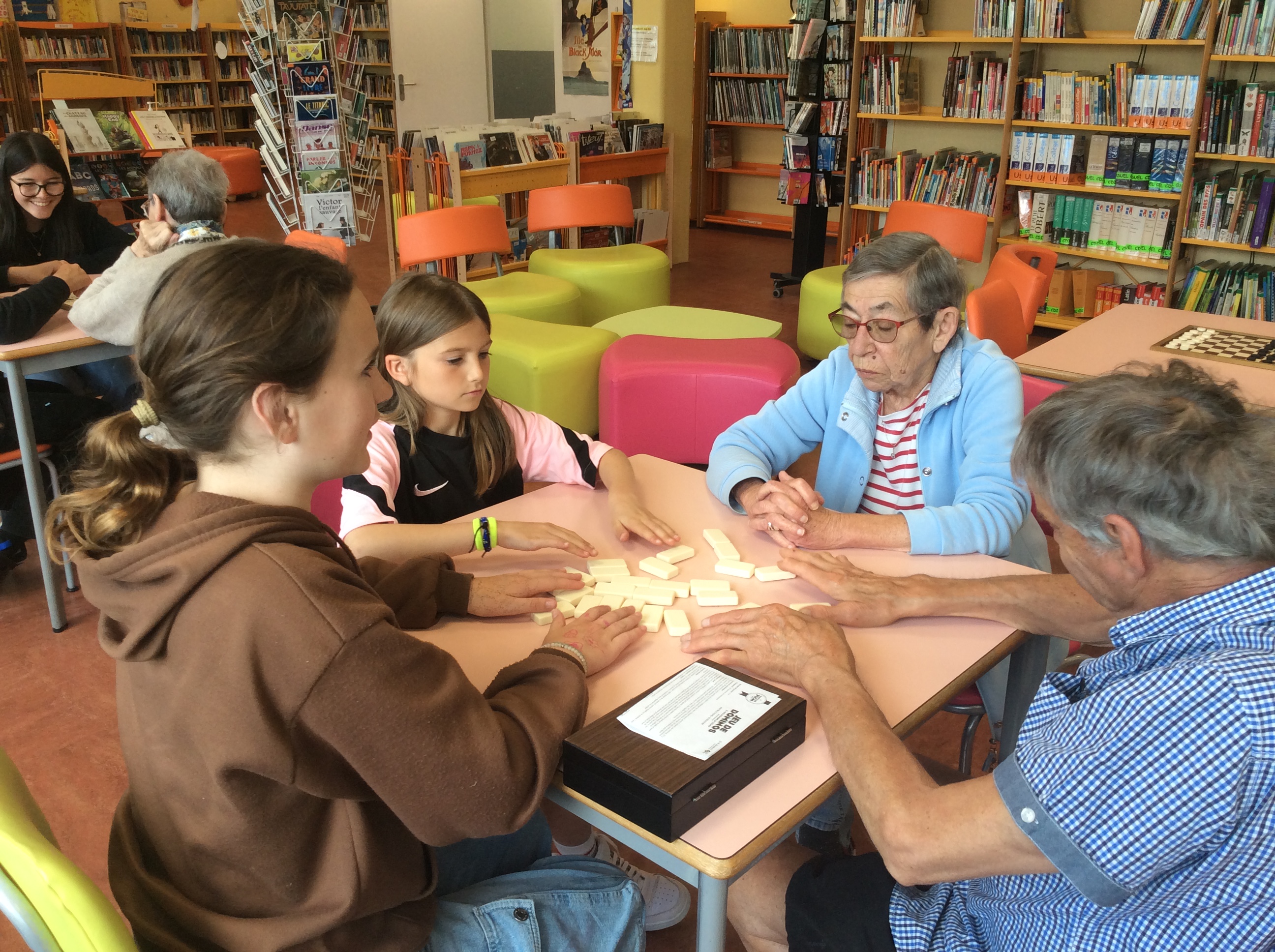 Initié par le CVC (conseil de vie collégienne), les trois précédentes rencontres autour du conte s’étaient déroulées au foyer. Mais ce sont nos amis, les seniors, qui se sont déplacés à cette nouvelle occasion, accompagnés de leur animatrice, au CDI du collège. Une rencontre placée sous le signe du jeu dans la mesure où élèves et résidents se retrouvaient pour s’affronter aux dominos, au petits chevaux ou aux échecs. Tous ont été gagnants puisque seul le plaisir de se retrouver et la joie authentique de partager cette heure était au rendez-vous.