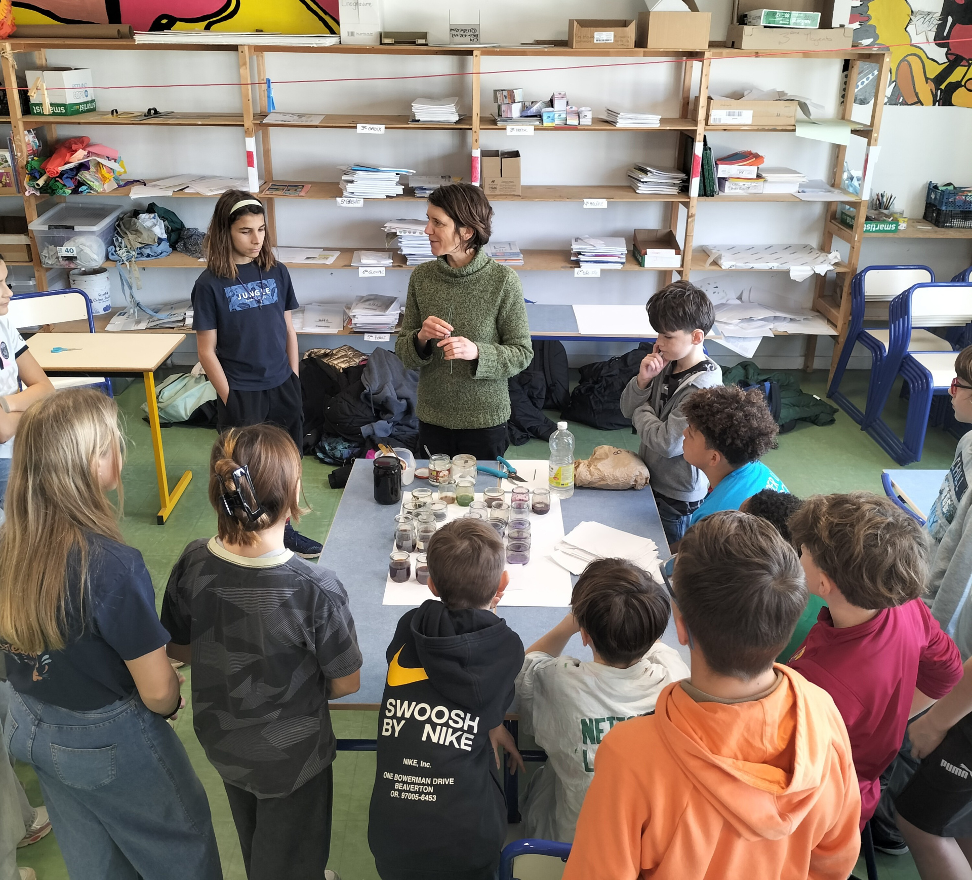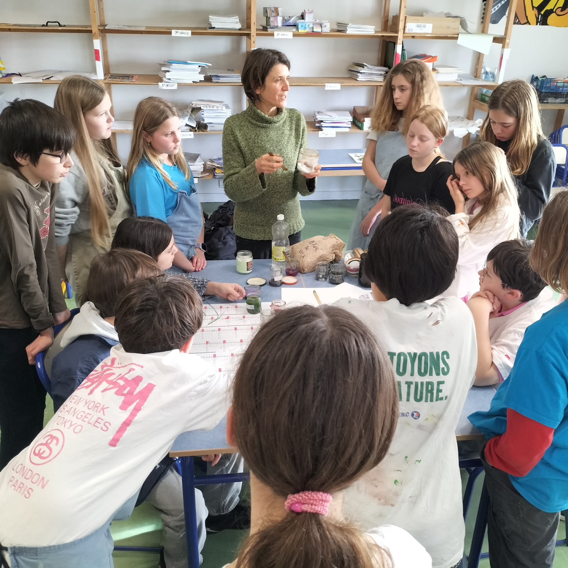 Dans le cadre de la sensibilisation au développement durable, les élèves des classes de 6e ont participé à 3 heures d’atelier de création de peinture naturelle végétale.