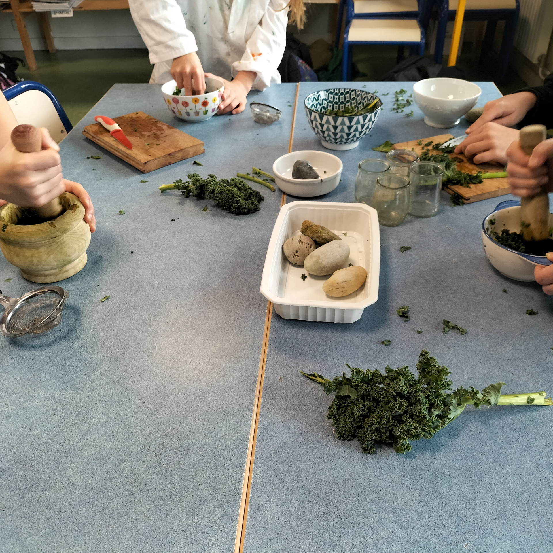 Cet atelier interdisciplinaire, à la fois artistique et scientifique, leur a permis de comprendre comment mieux préserver nos ressources en eau en fabriquant des pinceaux recyclables et des peintures non polluantes pour notre environnement. Les matériaux simples issus de leur environnement proche, légumes et végétaux de saison, leur ont servi de matière première !